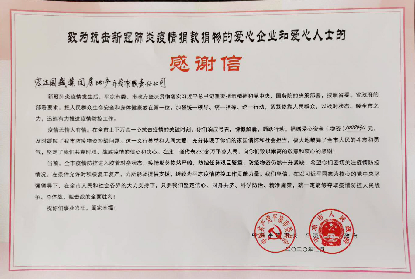 宏達國盛商貿控股集團有限公司(簡稱宏達國盛集團),座落于“絲綢之路經濟帶”黃金重要節點城市、華夏文明傳承創新區、國家5A級旅游風景區崆峒山腳下、陜甘寧三省交匯處,隴東“旱碼頭”商貿重鎮、“2005浙商(省外)最佳投資城市”——甘肅省平涼市。    集團公司創始于2001年,經過十幾年的拼搏發展,于2012年經國家市場監督管理總局名稱核準為無行政區劃企業集團,在陜西省西安市、云南省紅河州等地設有公司,從業人員1200多人,擁有10家分公司,已形成集建筑開發、房產經紀、商貿物流、健康科技、文旅康養、電子商務六大產業板塊為一體,多元融合,齊頭并進,資源共享,優勢互補,可持續穩健發展的集團化架構公司。集團品牌有甘肅省級旅游休閑街區——崆峒不夜城?商業步行街,好房達·房產經紀,成達華聯·連鎖便利店等。開發并運營國家電子商務進農村綜合示范項目,宏達國盛全球家居建材市場,宏達國盛石材市場,宏達國盛五金機電燈飾城,宏達...